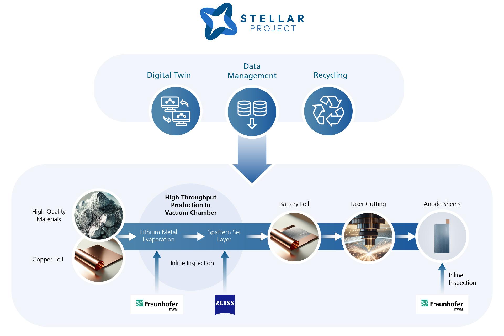 Eine effiziente Batterietechnologie ist ein zentraler Baustein, um die nationalen und europäischen Klimaziele zu erreichen. Lithium-Ionen-Batterien dominieren bislang den Markt, stoßen aber zunehmend an ihre physikalischen und technologischen Grenzen. Lithium-Metall-Batteriesysteme gelten als vielversprechende Nachfolgetechnologie. Im EU-Projekt »STELLAR« arbeitet das Fraunhofer-Institut für Techno- und Wirtschaftsmathematik ITWM gemeinsam mit 16 europäischen Partnern an der Entwicklung einer kosteneffizienten Testanlage zur sicheren und nachhaltigen Herstellung von Lithium-Metall-Anodenfolien.