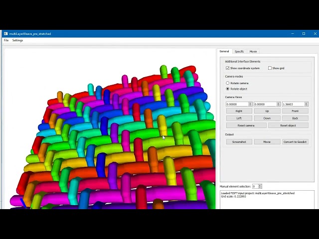 All tools have interfaces to each other and also to GeoDict (optionally to Ansys/Abaqus as IGES-formats) in order to perform further fluid mechanical simulations on the textiles, e.g. to determine their permeability in any elongation state. An interface with FeelMath allows further detailed three-dimensional mechanical simulations at specific yarn or contact points, so that strength and durability can also be investigated.