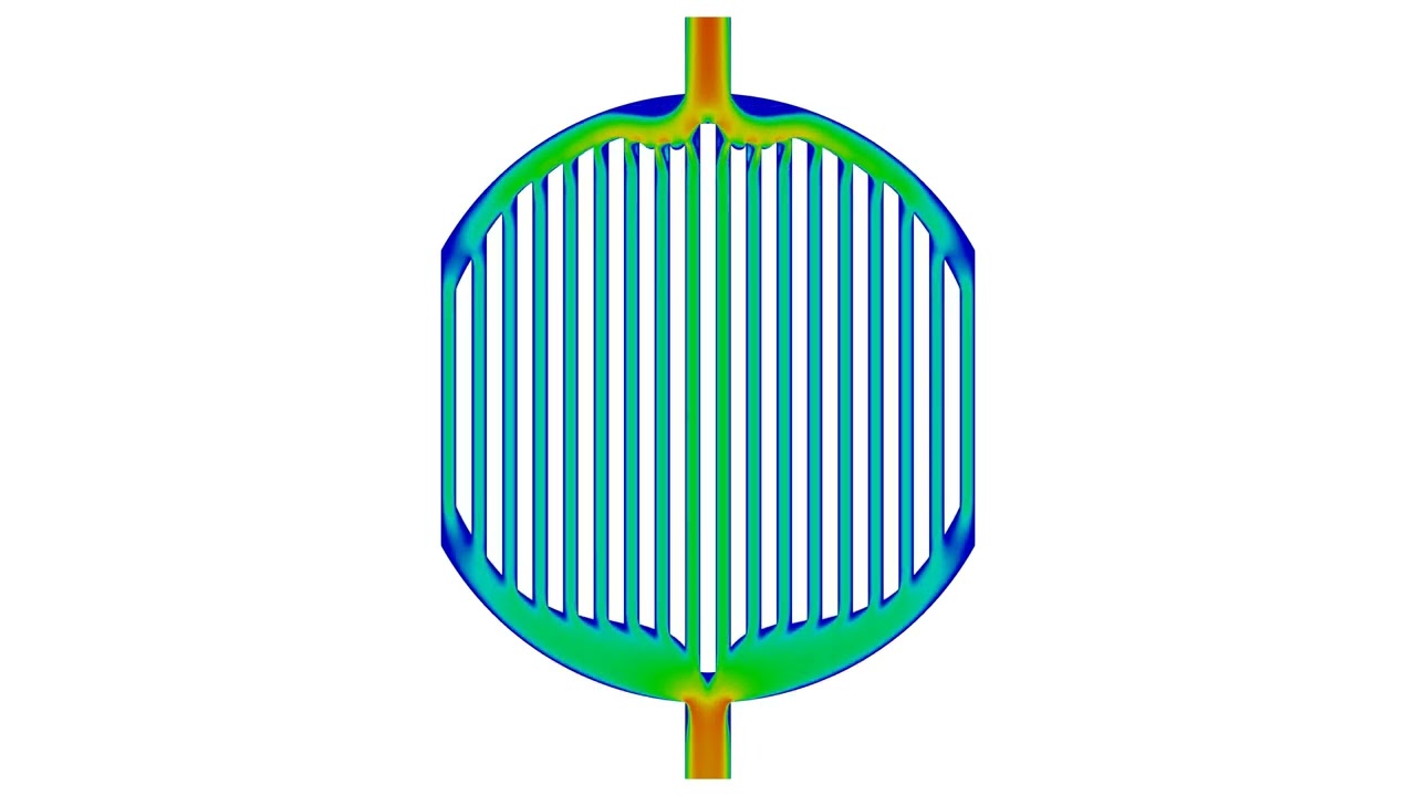 Fluid dynamic shape optimization deals with the question of how an improvement of a flow component – e.g. continuous chemical reactors or electrolysis cells – can be achieved. How should the shape of such a component be modified in order to improve the process? This is often crucial as special process conditions, such as a uniform flow or residence time distribution or a low pressure loss, must often be achieved in the components. Our software cashocs automates the shape optimization of such components and systems for industrially relevant problems. This enables us to solve even extremely complex problems within the shortest development time.