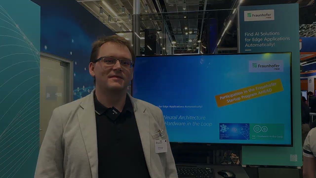 A team from the »High Performance Computing« department and the Rhineland-Palatinate University of Technology Kaiserslautern-Landau (RPTU) from the »Design of Microelectronic Systems (EMS)« department presents our AI system »Neural Architecture Search for Embedded Applications (NASE)« at the Fraunhofer-Gesellschaft's joint booth.
